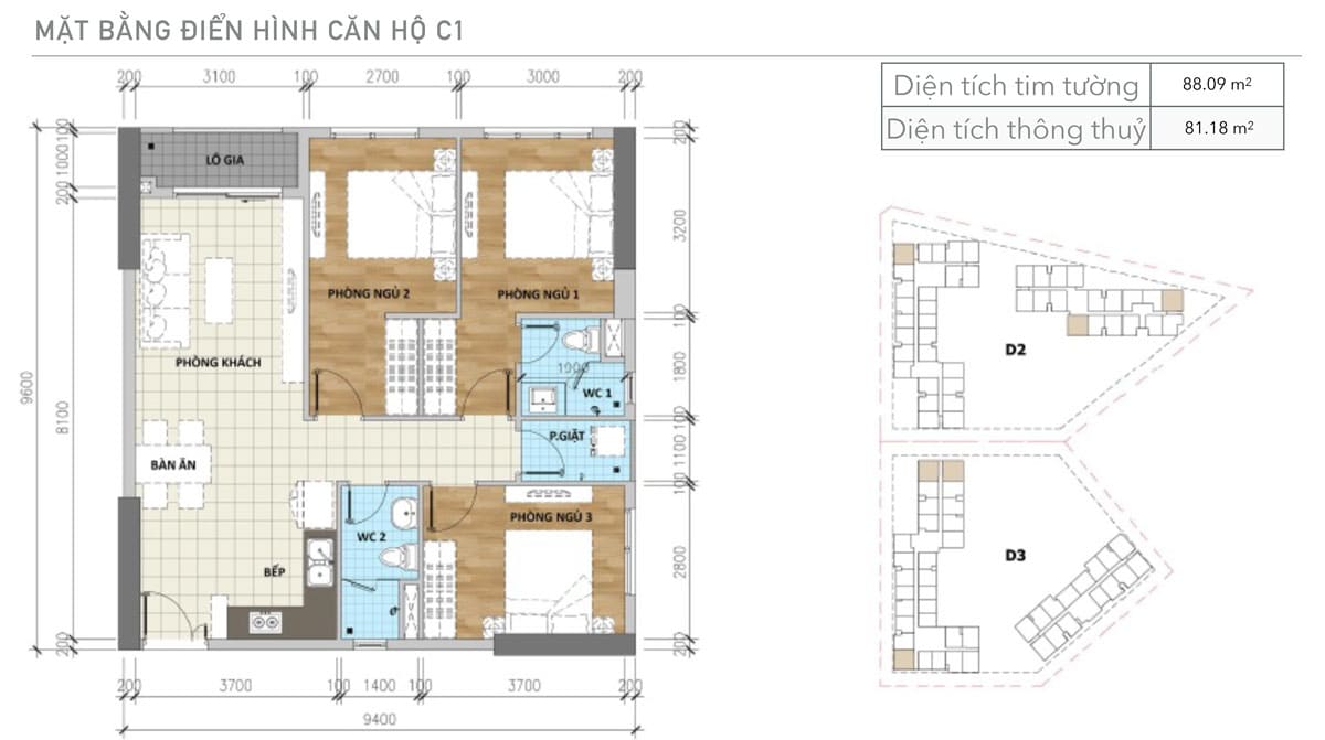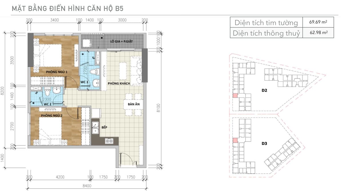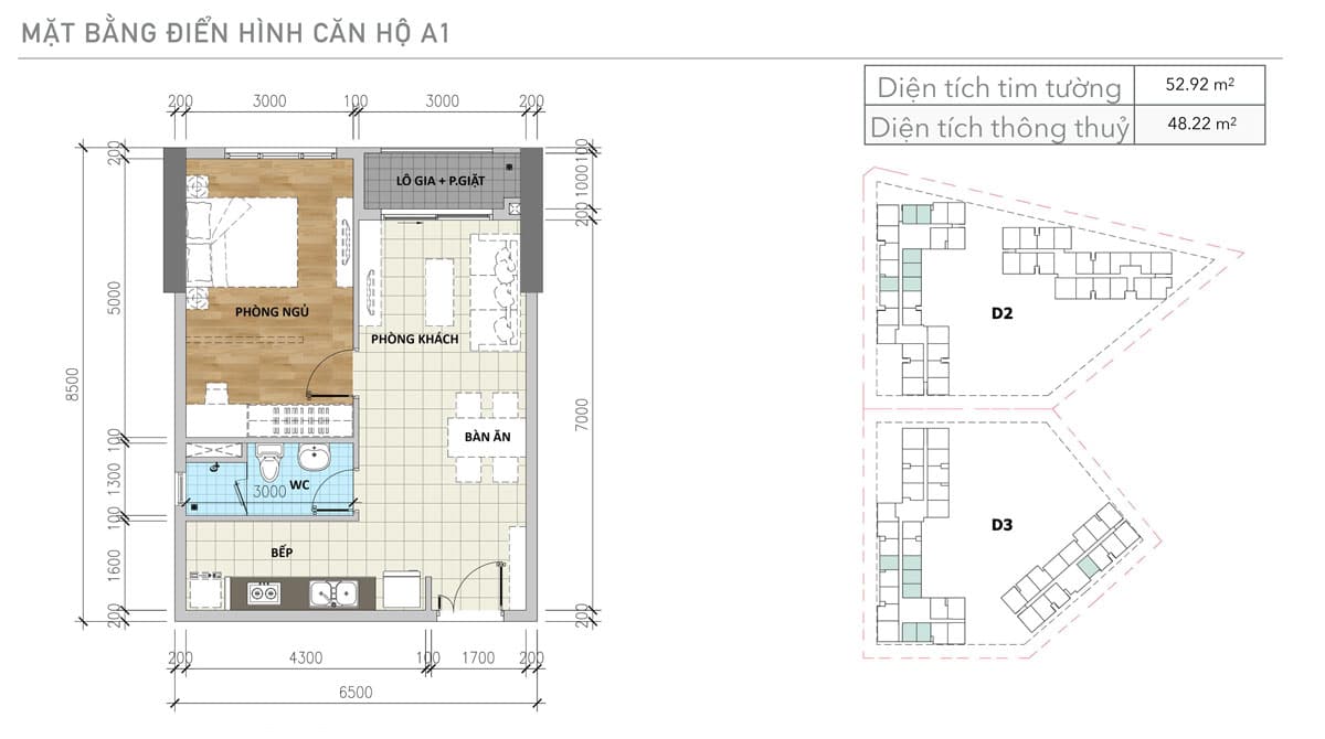 Căn hộ D-Aqua có nhiều loại diện tích khác nhau, dưới đây là một số căn hộ tiêu biểu: