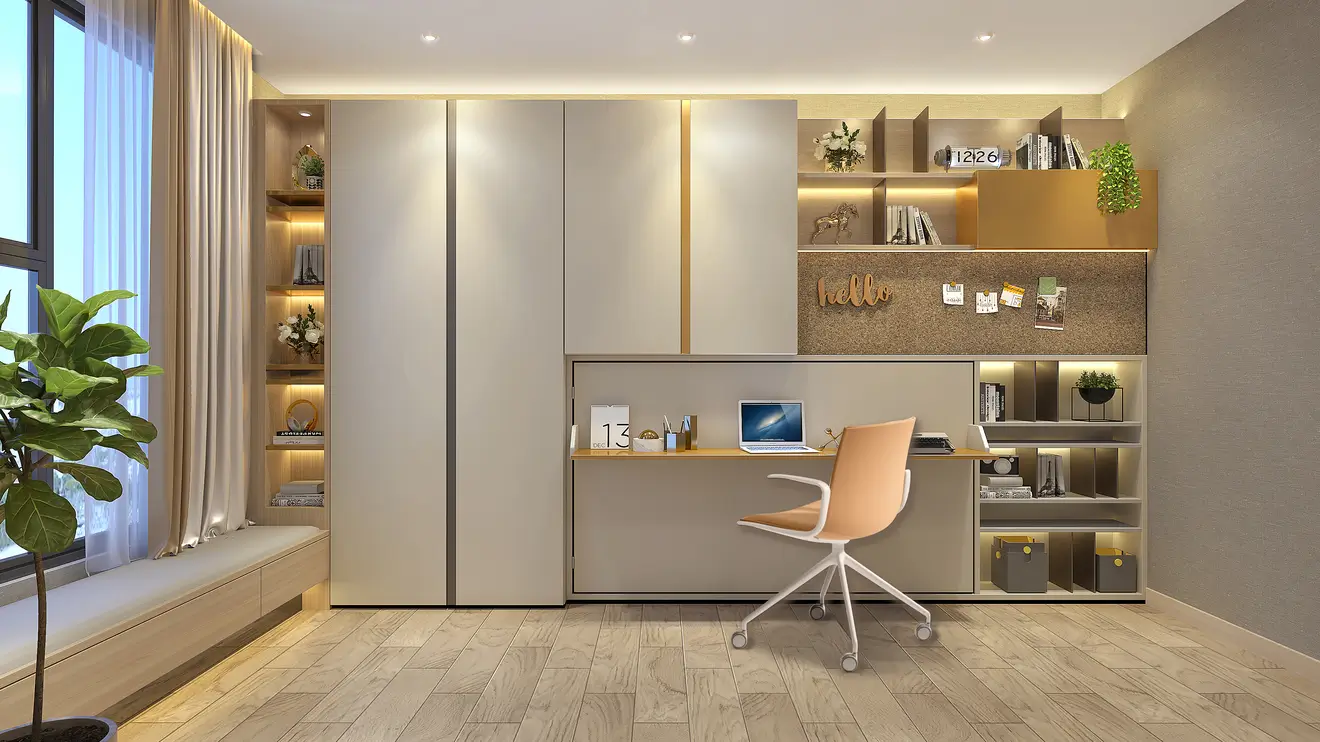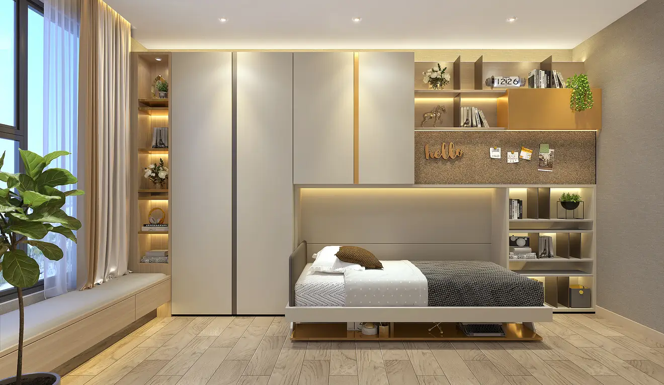 Nội thất được tận dụng những góc chết, những điểm kín, góc khuất và nơi thiếu sáng nhằm tạo nên sự rộng rãi, tối ưu diện tích căn hộ.